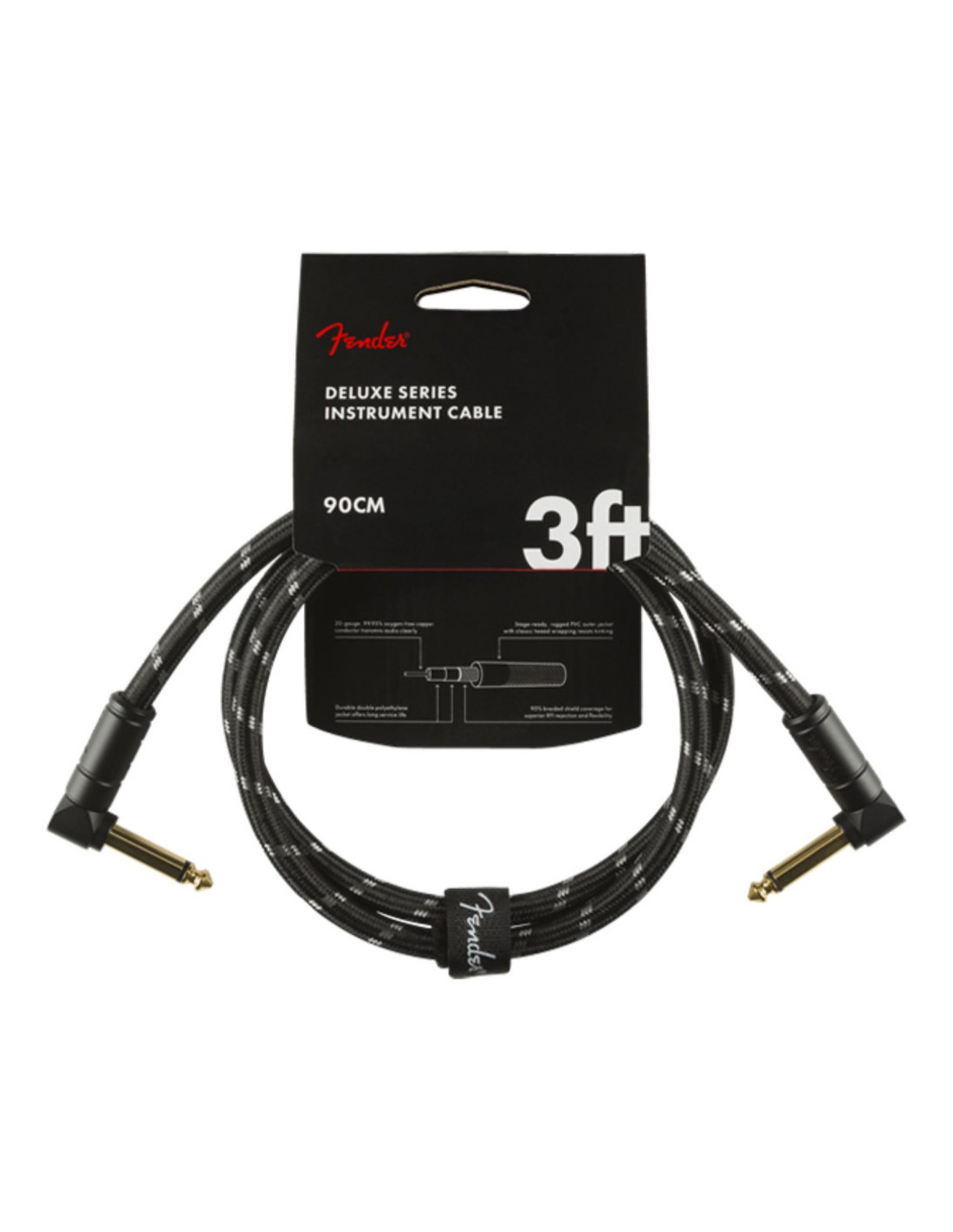 Los cables de la serie Deluxe de Fender cuentan con materiales de la más alta calidad y con un apantallamiento trenzado para ofrecer una durabilidad, una conductividad y una transparencia emblemáticas. Nuestros cables de gama alta tienen extremos moldeados a medida con alivio de tensión bajo la carcasa, además de conectores chapados en oro de 24 quilates que no se empañan ni degradan el sonido con el paso del tiempo. Estos cables utilizan un apantallamiento trenzado muy silencioso que está diseñado para maximizar la pureza de su tono, y están protegidos por una cubierta de tweed suave pero resistente que proporciona la máxima protección con el estilo clásico de Fender.